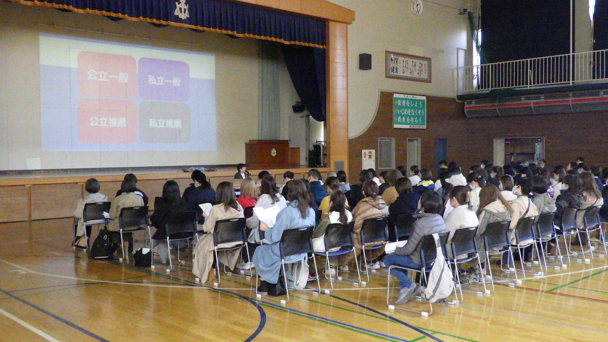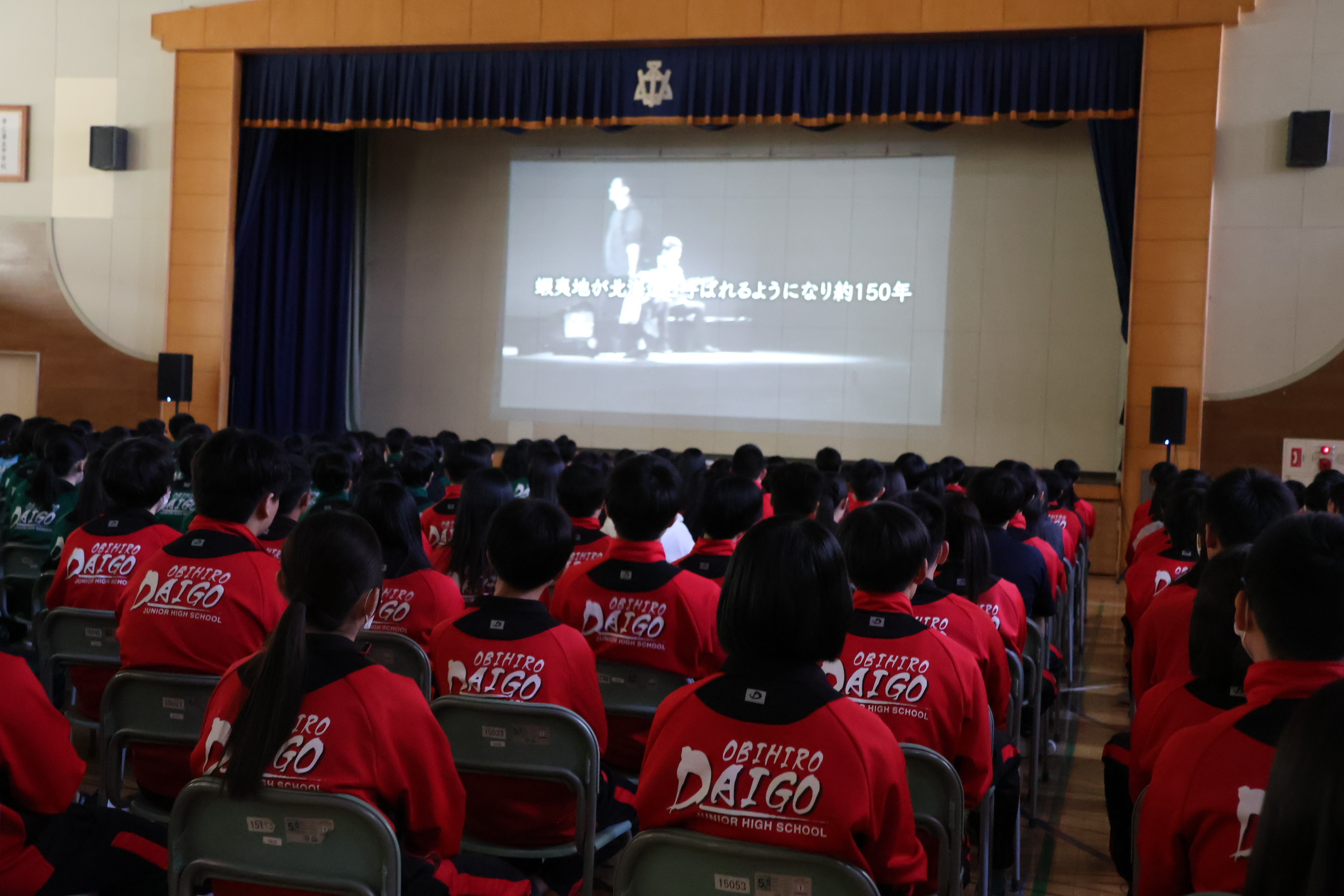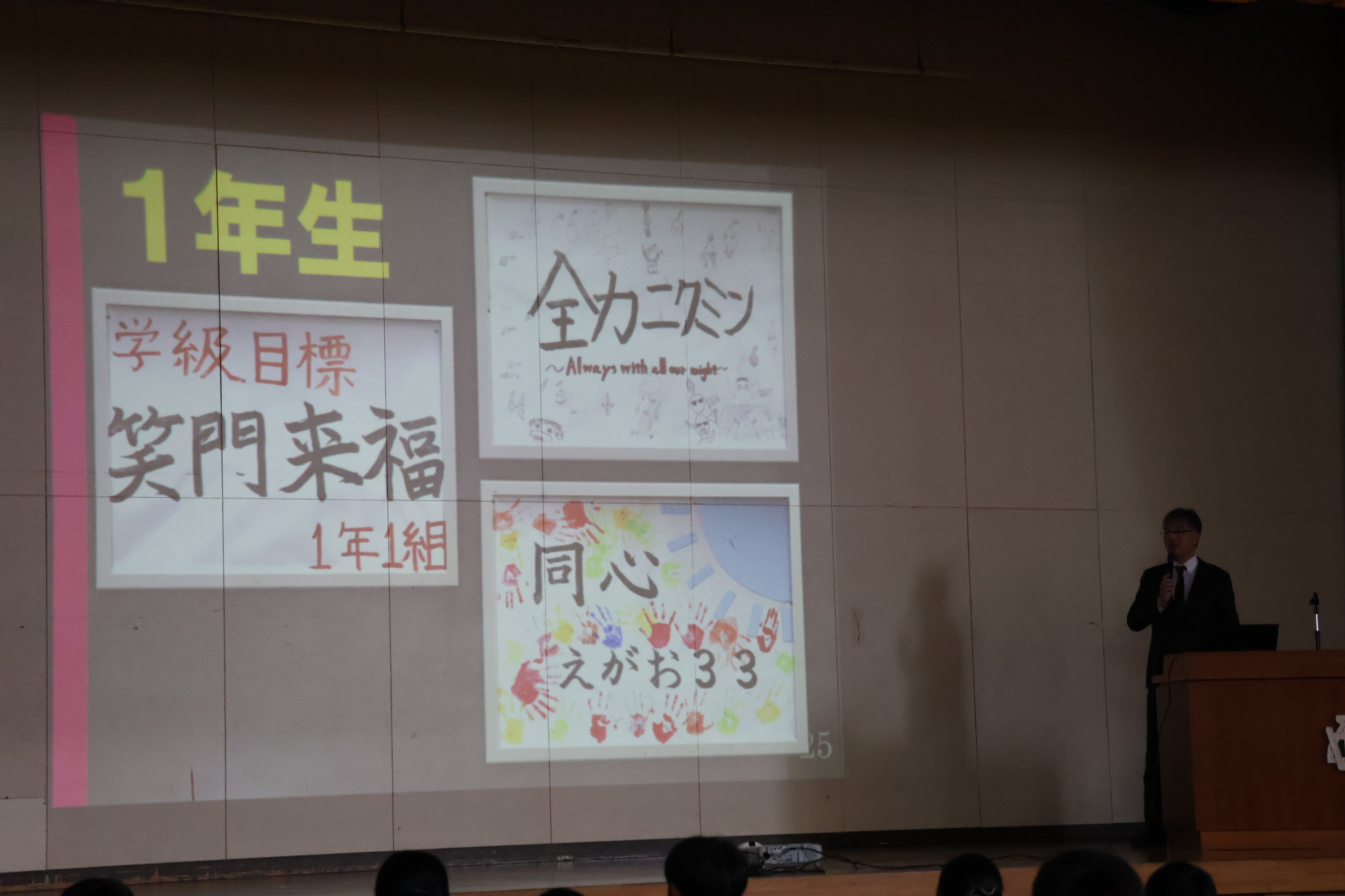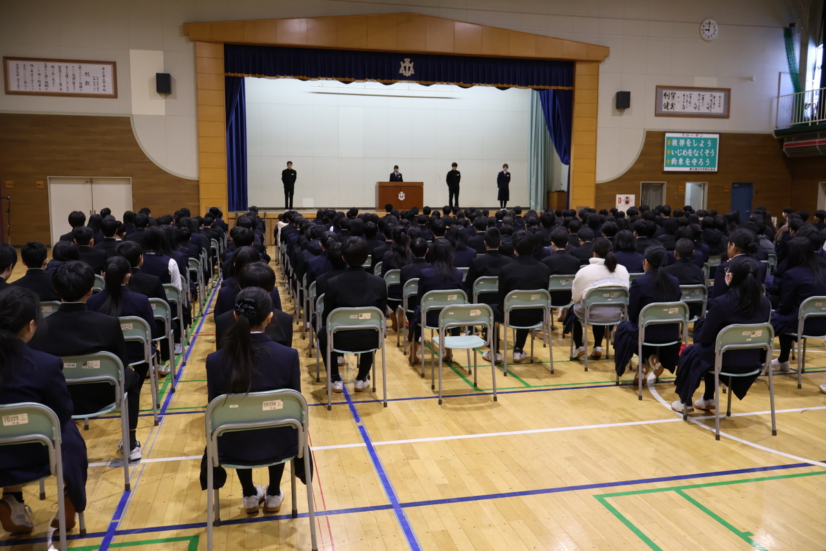 ・校長は学級目標に触れ、個人や学級ですべきことについて話をしました。また、冬休み中に全道大会に出場する女子バスケット部とスピードスケートの選手の壮行会も行いました。