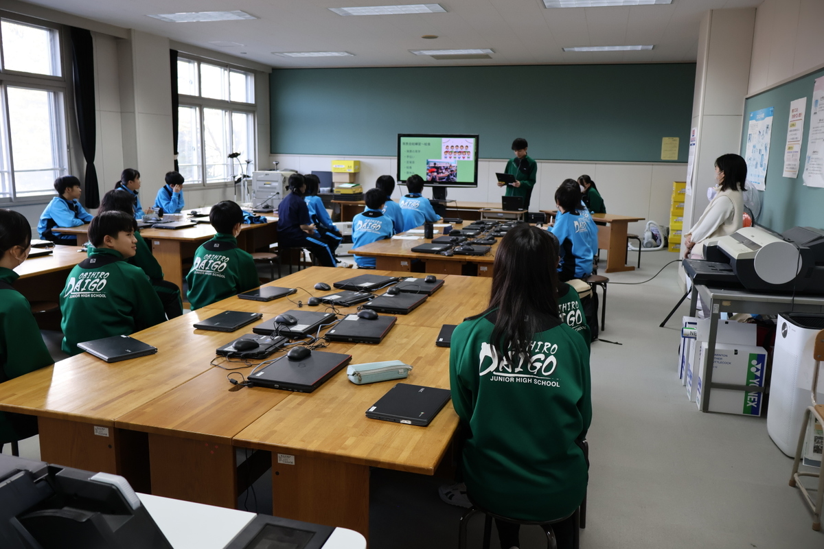 ・2年生が職場体験の報告を、1年生に向けて発表しました。