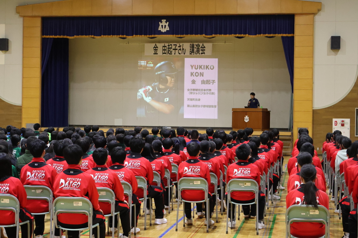 ・栗山高校女子硬式野球部監督の金由紀子さんによる講演会を行いました。元日本代表として活躍され、ワールドカップ優勝に輝いた経験を踏まえ、努力する尊さを伝えてくれました。